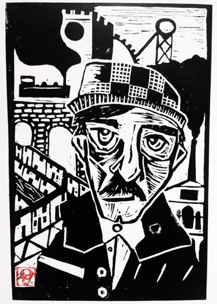 Based in a cottage studio in the Brecon Beacons, Daniel creates artwork inspired by folklore, landscape, and the industrial history of South Wales.