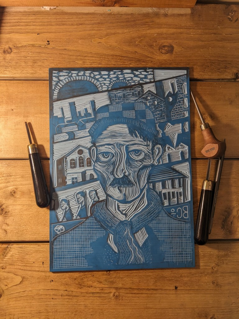 BC Ironworks measures 297 x 210mm, part of a limited edition run of just 30. Each print is hand-carved and printed onto 300gsm paper.